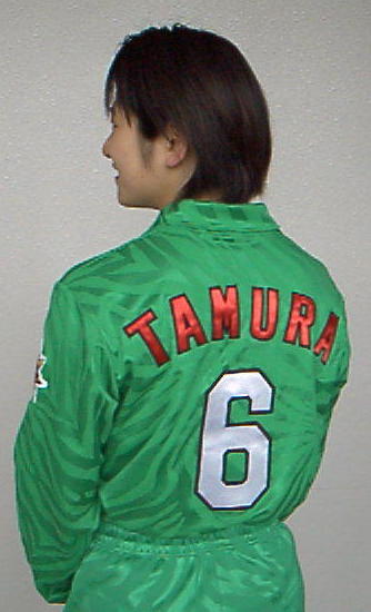 00年07月08日(ダイエー総合センターにて) 「マリさ〜ん、背番号撮らせて下さい(笑)」で奈良のサポがゲットした超貴重な背番号6画像。 背番号6は3日間だけだったため、背番号6のお願いワンショット写真はコレしか存在しないはず。 (奈良のマーヴェサポ提供)