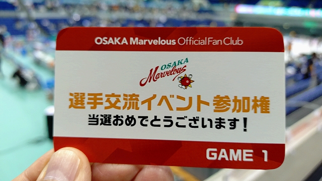 今日は平日金曜日。12時まで仕事をしましたが、午後からは半日有給休暇を取って会社を休んだダメダメ社会人です。12時から私服に着替えてスーツを置いて会社を出ました。JRに乗り東京駅に移動。一服してから13時頃の新幹線のぞみに乗りました。15時半頃に新大阪駅に着き、JRエキスポライナーに乗り桜島駅に移動。関西のマーヴェサポ達と合流して旗ポールを持って貰ってから、喫煙ボックスに行き、一服してから16時半頃の無料シャトルバスに乗り会場に移動しました。短い列に並び、17時になったのでマーヴェファンクラブプレミアム先行で入場しました。マーヴェハリセン等を貰ってから、マーヴェファンクラブガチャガチャをやりに行き、コンプリートしました。今日の御朱印カードを買ってからスタンド席に荷物を置いてグダグダしました。今日は選手送り出しハイタッチイベントに当選していたので集合時間18:10にファンクラブ受付に行きました。