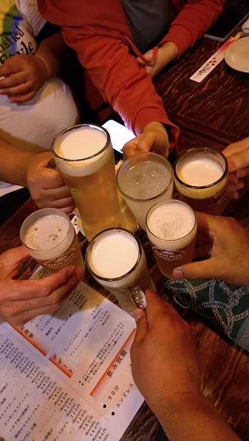 会場を出る時にマッチナビゲーターのユウヤ氏がいたので、マーヴェラスコール応援のクラップ音についての要望を伝えておきました。会場を出て歩いて、以前行った事があるあびこ駅近くの居酒屋に入り、17時過ぎからマーヴェサポ5名で「マーヴェの勝利に乾杯!」しました。