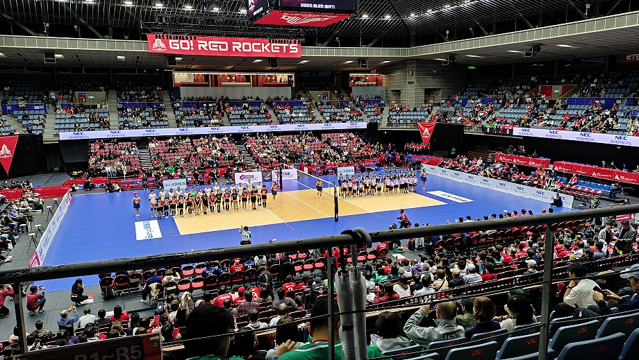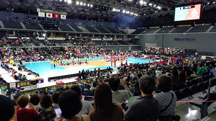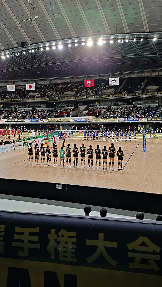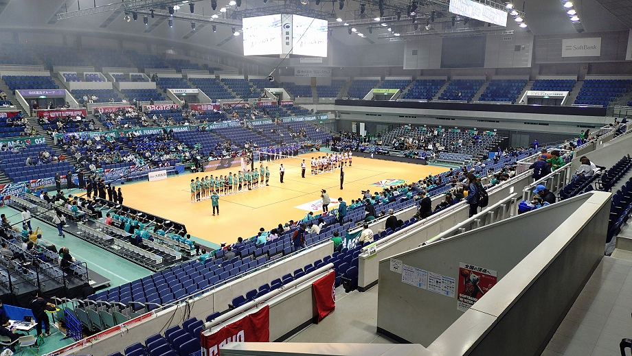 7時過ぎに部屋を出ました。歩いて駅に行き7時半頃のJRに乗りました。さらにJR→JRと乗り継いで8時半過ぎに千駄ヶ谷駅に着きました。徒歩数分で会場に着くと列が会場裏の喫煙所近くまでありました。流石男子大会が絡むと長い行列になりますね(笑)。一服して時間を潰してから9時を少し過ぎたあたりで列に並ぼうとしたらもう列がありませんでした。こういうところだけは運営に慣れているイエローカンパニーを褒めてあげます。入場してスタンド席に向かい、先に入場していたマーヴェファンサポ達と合流。荷物を置いてからマーヴェのウォーミングアップを見てマーヴェ話をしたりグダグダして試合開始を待ちました。第1試合終了までは当日券を販売しないという事で関西のサポが東京まで来るも入場出来ませんでした。